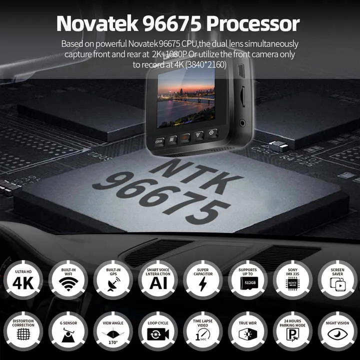 4K Avto kamera za snemanje vožnje z GPS sistemom in 2-palčnim zaslonom, omogoča odličen nadzor dogajanja v okolici vozila, medtem, ko ste vi osredotočeni na vožnjo.