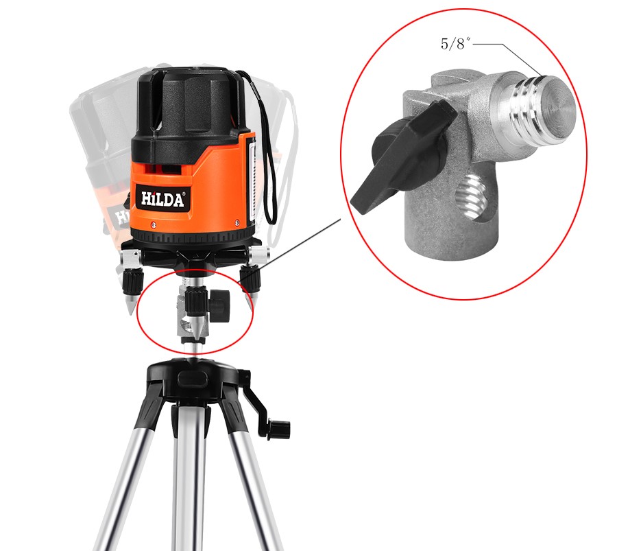 - Standardni Pritrdilni Vmesnik: Opremljen s 5/8 navojem, kar omogoča hitro in varno pritrditev širokega spektra laserskih nivelirjev, ne da bi potrebovali dodatne adapterje. V primeru uporabe naprav z navojem G1/4, se lahko namesti tudi adapter.