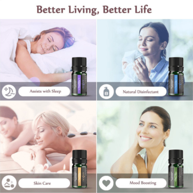 – Vsebuje naslednja terapevtska eterična olja: Sivka, Sladka Pomaranča, Čajno Drevo, Evkaliptus, Limona, Poprova Meta, Peppermint, Borgamot, Frankincense, Rožmarin, Cimet in Ylang-Ylang
