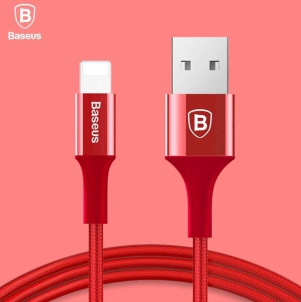Baseus premium LED kabel lightning rdeči 150cm za hitro polnjenje iPhone pametnih telefonov.