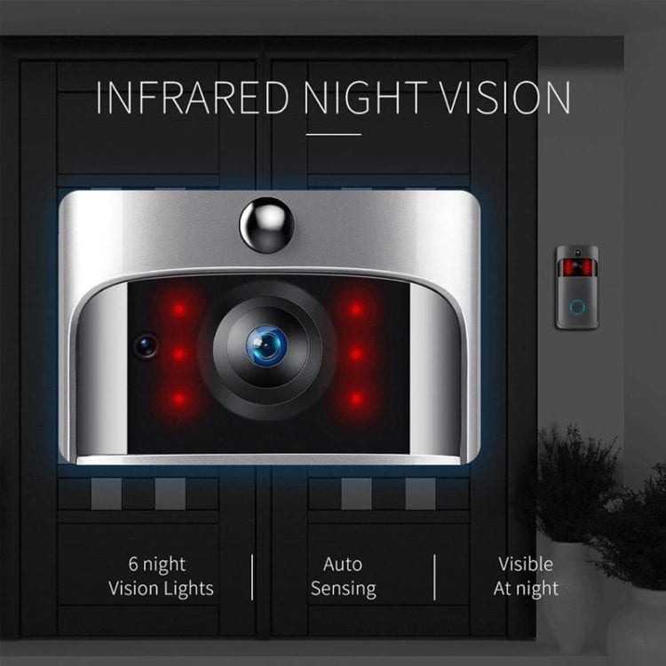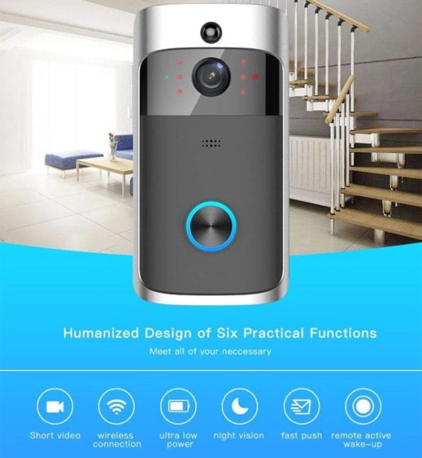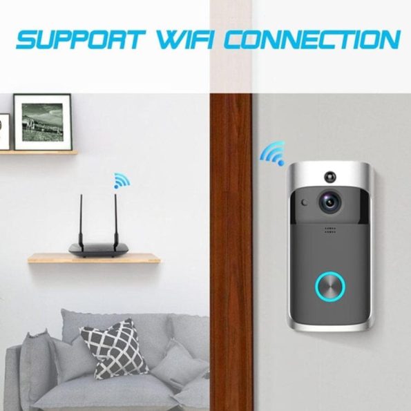 Brezžični pametni WIFI zvonec s kamero V8 omogoča spremljanje dogajanja pred vhodoma vašega doma. V primeru, da vas ni doma lahko izkoristite funkcijo dvosmernega pogovora preko vgrajenega zvočnika in mikrofona. Pametni zvonec omgoča samodejno zajemanje posnetkov na daljavo, ob zaznavanju gibanja ali ob pritisku gumba na zvoncu. Dodatno izboljšano nočno snemanje nudi ogled še bolj kvalitetnih posnetkov tudi v nočnem načinu. WIFI zvonec je odporen na dež, veter in ostale vremenske pogoje po standardu IP65.