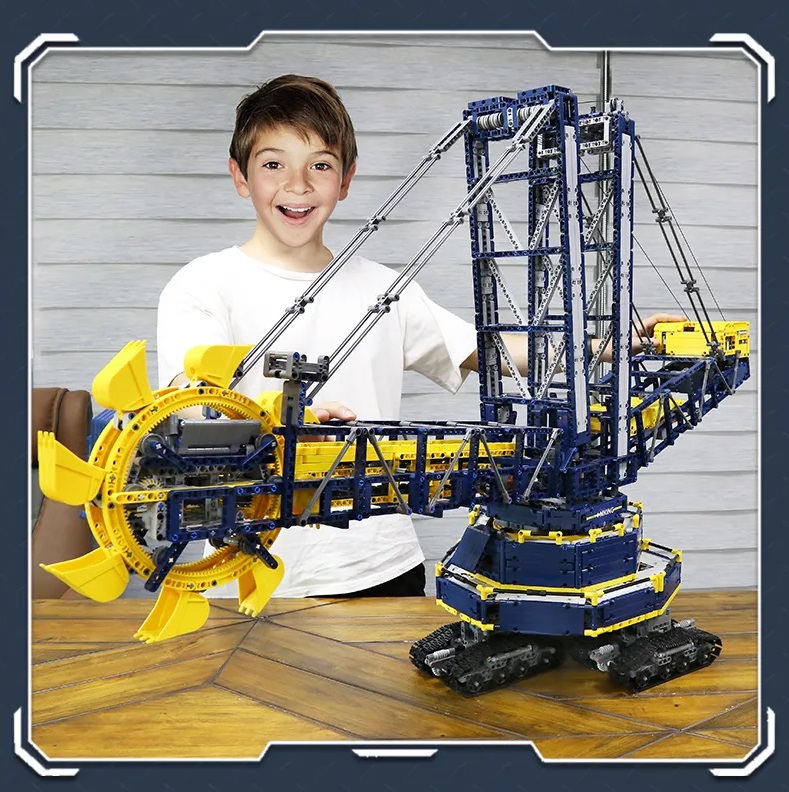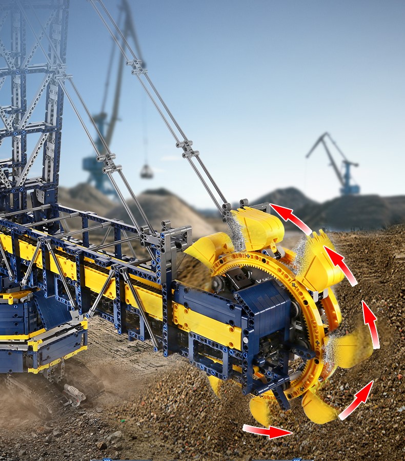Bucket bager z vedri kocke za sestavljanje s pogonom – 4588-delni, bo osupnil vse navdušence nad sestavljanjem. Velikanski 116cm dolg model premogovniškega bagra z vedri, lahko upravljate preko aplikacije na pametnem telefonu ali preko priloženega daljinskega upravljalnika. Za plastične gradnike je uporabljena 100% ABS plastika, katera je izjemno vzdržljiva in ni škodljiva za zdravje. Vsi gradniki so visoke kvalitete in imajo visoko odpornost proti obrabi.