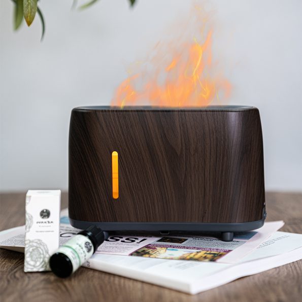 Difuzor in osvežilec oFlame z učinkom kamina – Dark Wood 3v1, ustvarja prijeten ambient, hkrati pa skrbi za svež in dišeč zrak v vašem prostoru. Moderna zasnova se poda v katerikoli prostor, naj bo to delovno mesto, spalnica, kuhinja ali pa katerikoli drug prostor.