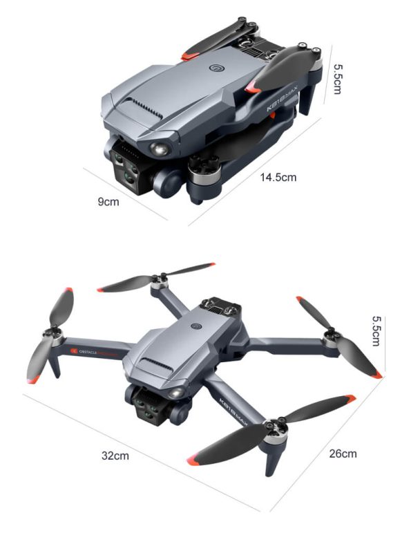 Dron K818 Max V2 s kamerami in sistemom za prepoznavo ovir se ponaša z izboljšano funkcijo samodejnega izogibanja ovir. Velika pridobitev je dodatna kamera na spodnji strani in izboljšano lebdenje, zahvaljujoč sistemu za samodejno ohranitev natančne višine.