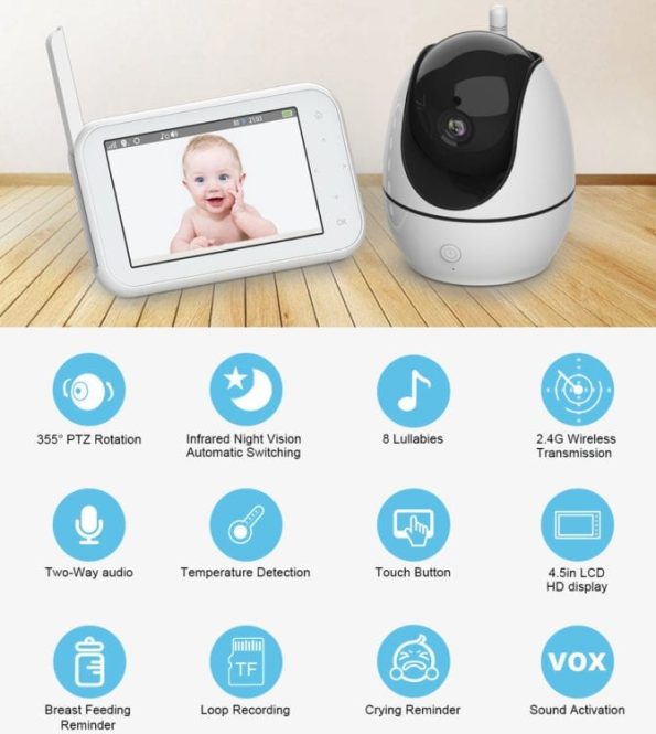 Elektronska video varuška Elite1Pro nudi vrhunsko kvaliteto slike, vrtljivo kamero, prikaz temperature, velik ter pregleden zaslon, VOX varčni način in še mnogo več. Elite1Pro zaseda sam vrh med elektronskimi video varuškami in je #1 izbira, kadar iščete zanesljivo napravo za nadzor najmlajših.