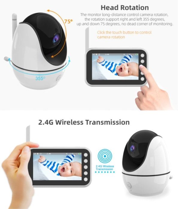 Vrtenje kamere na daljavo – Izboljšana kamera nudi vrtenje preko starševske enote za širše vidno polje in boljši nadzor. Bodite vedno na tekočem, kaj se dogaja v otroški sobi.