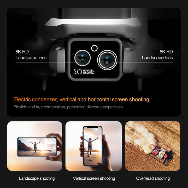 Glavne lastnosti: Elektronsko nadzorovana kamera visoke ločljivosti, Pametno izogibanje oviram, GPS modul za podporo mnogim funkcijam, Stabilno lebdenje, Avtonomno letenje po vnaprej določenih točkah, Inteligentno sledenje, vzlet in pristanek s pritiskom na gumb, upravljanje položaja leče med letenjem, 5G prenos signala, urejanje posnetkov preko brezplačne aplikacije, 360° zasuk in mnogo več.