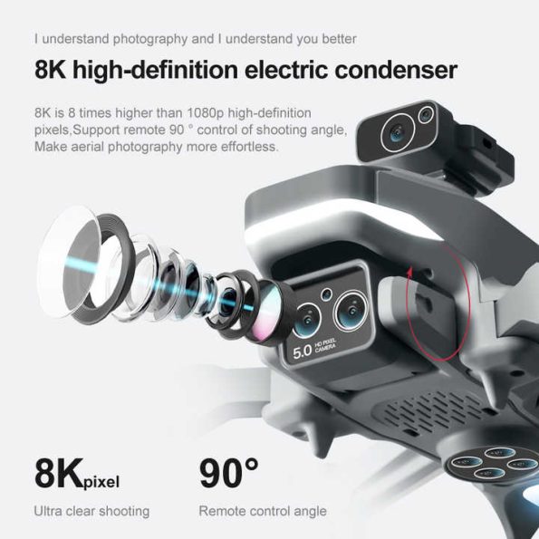 Glavne lastnosti: Elektronsko nadzorovana kamera visoke ločljivosti, Pametno izogibanje oviram, GPS modul za podporo mnogim funkcijam, Stabilno lebdenje, Avtonomno letenje po vnaprej določenih točkah, Inteligentno sledenje, vzlet in pristanek s pritiskom na gumb, upravljanje položaja leče med letenjem, 5G prenos signala, urejanje posnetkov preko brezplačne aplikacije, 360° zasuk in mnogo več.