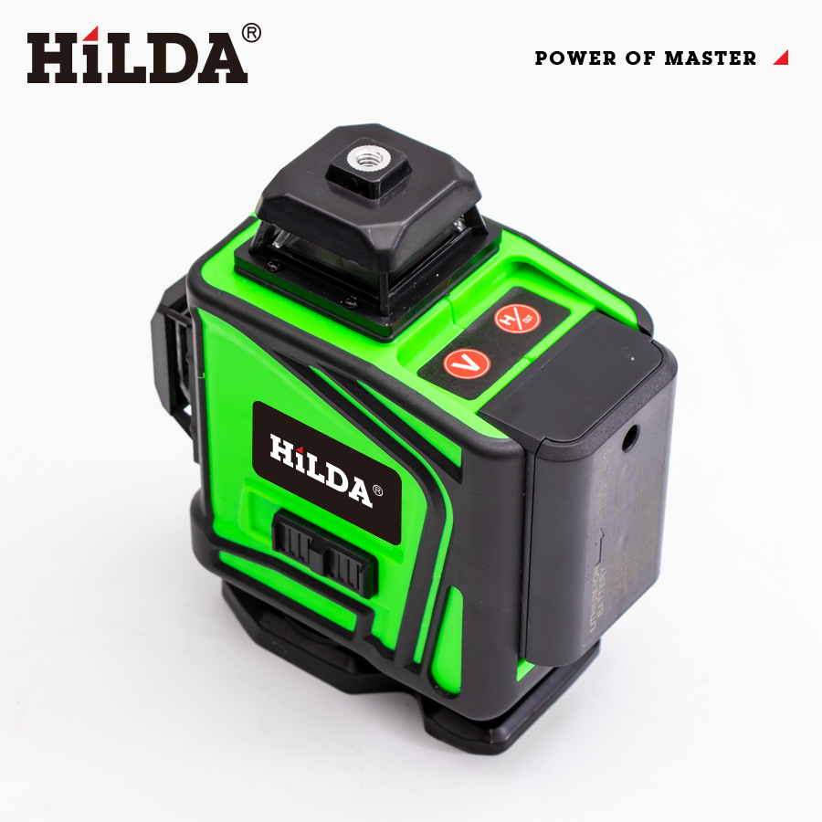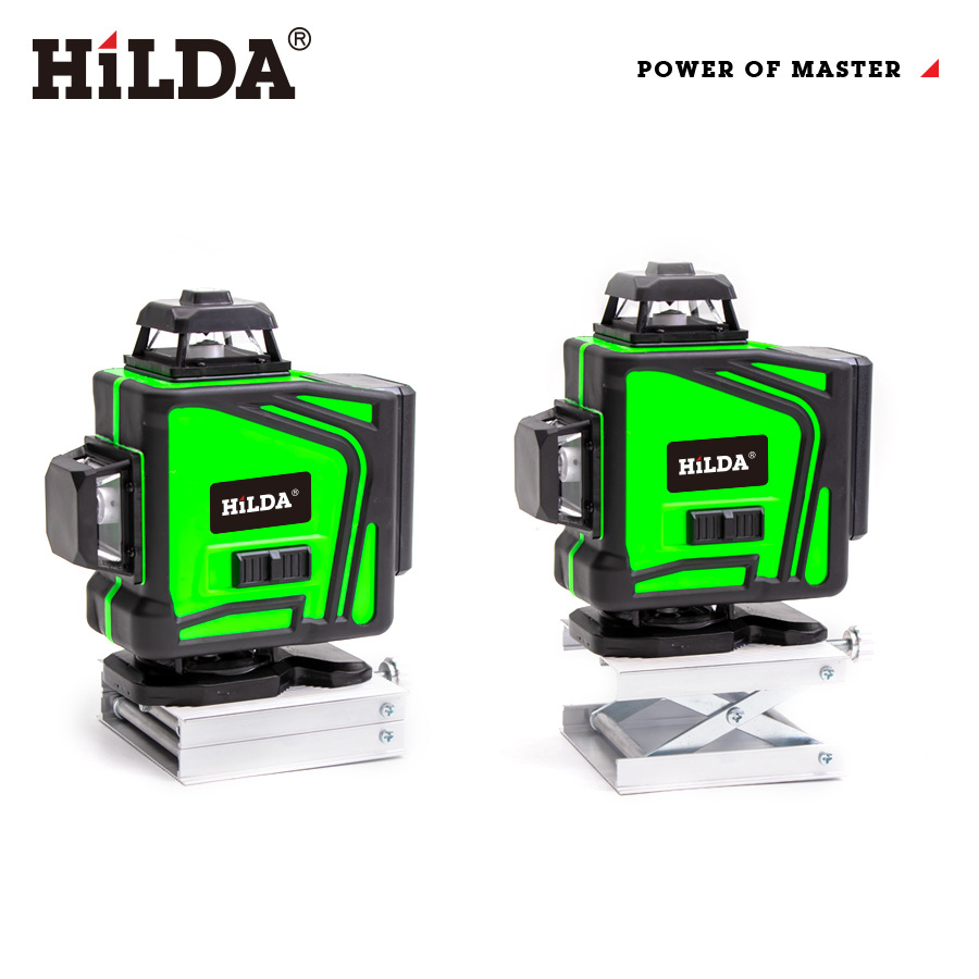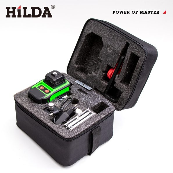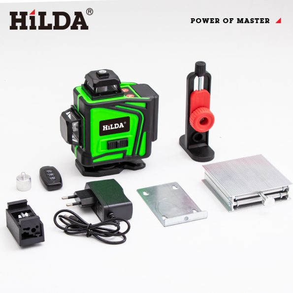 HILDA 4D gradbeni laserski nivelir, 16 linijski zeleni s samodejnim uravnavanjem, omogoča bolj natančno izravnavanje različnih površin, nameščanje pohištva in kot pomoč pri različnih ostalih izravnalnih delih. Vgrajen močan zeleni laser nudi odlično vidljivost, tudi v svetlih prostorih. V kompletu je priložen HILDA 16-linijski laserski nivelir in različna dodatna oprema.