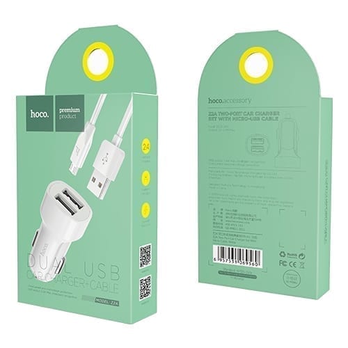 HOCO 2.4A avtopolnilec z micro USB kablom za učinkovito polnjenje naprav v vašem vozilu.