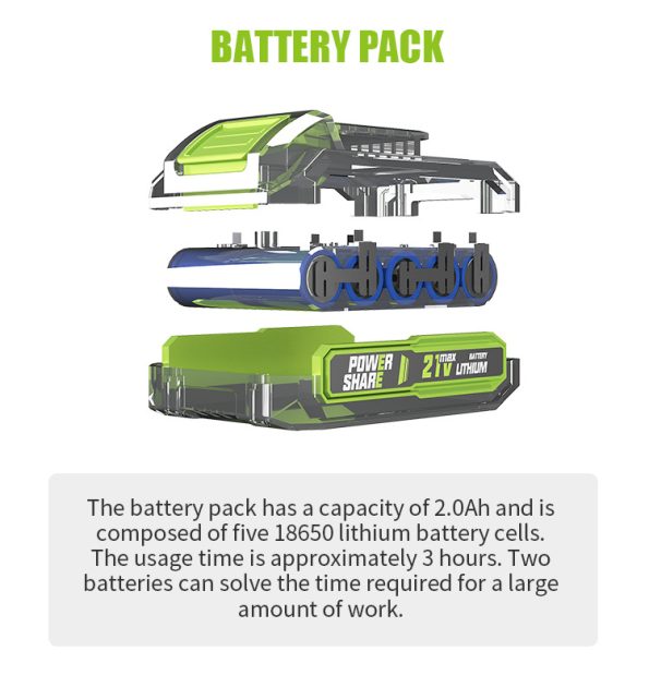 • Dve 2.0 Ah bateriji: Zagotavljata dolgotrajno avtonomijo in neprekinjeno delo.