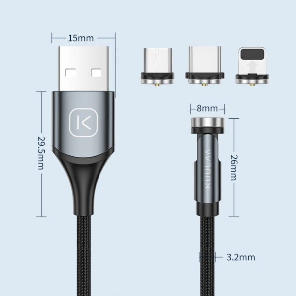 Magnetni kabel Kuulaa FastCharge s priloženimi nastavki – črn omogoča enostavno priklapljanje pametnega telefona s pomočjo nove magnetne tehnologije.