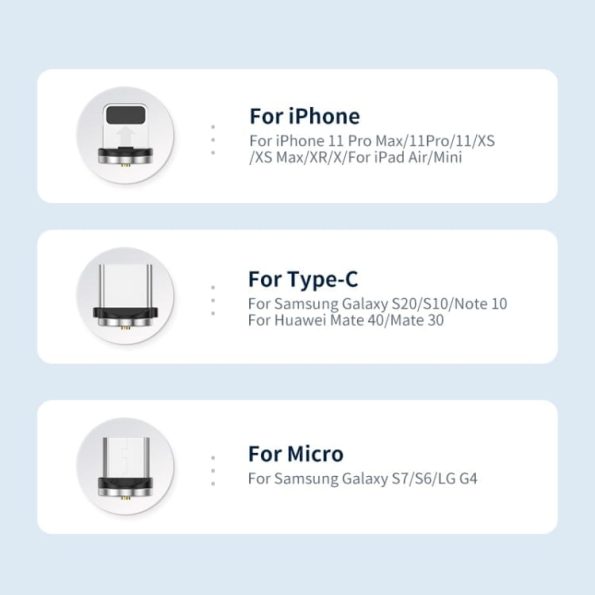 ✅ Poleg kabla so priloženi trije nastavki za razširjeno komatibilnost. 1x nastavek za Micro USB naprave, 1x nastavek za TIP-C naprave, 1x nastavek za Lightning USB naprave.