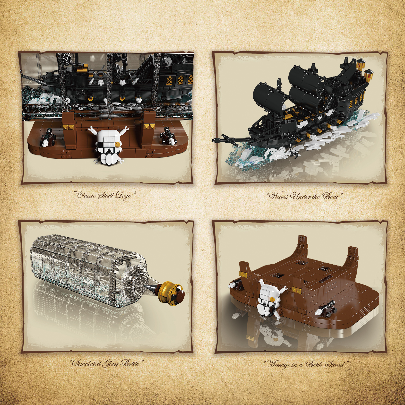 Mould King 10065 Black Pearl v steklenici kocke za sestavljanje, Velik model, 2499-delni