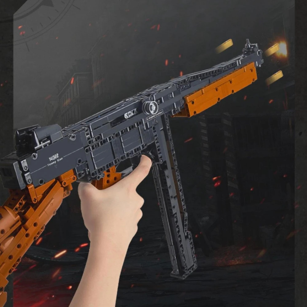 Odkrijte ikonično brzostrelko Thompson s kompletom kock za sestavljanje proizvajalca Mould King – 14022. Ta podroben model vključuje 1208 visoko kakovostnih ABS gradnikov in je odličen za ljubitelje vojaške zgodovine ter sestavljanja. Puška z ročnim zaklepom omogoča izstreljevanje plastičnih izstrelkov, kar dodatno poveča njeno realistično delovanje.