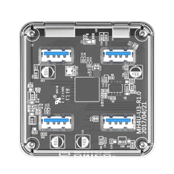 Orico 4x USB hub podpira visoko zmogljivo USB 3.0 tehnologijo. Inteligentno vezje VL817 nudi zanesljivo delovanje in dolgo življenjsko dobo, hkrati pa s stabilnim delovanjem še dodatno pripomore k boljši zmogljivosti priključenih naprav. Orico hub nudi možnost priključitve zunanjega napajanja kar omogoča priklop in delovanje zunanjih naprav, kot so trdi diski, USB ključki visokih kapacitet, itd. Vsak izmed izhodov nudi napetost 5V 0.9A. Omogočen je prenos podatkov do 5Gbps.