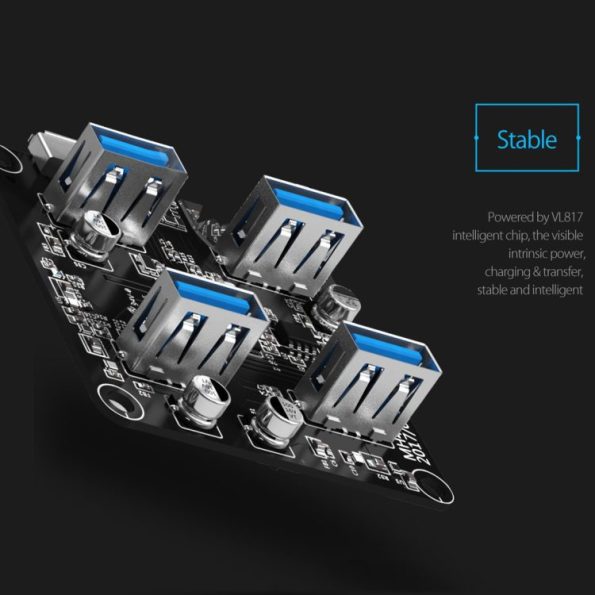 Orico 4x USB hub podpira visoko zmogljivo USB 3.0 tehnologijo. Inteligentno vezje VL817 nudi zanesljivo delovanje in dolgo življenjsko dobo, hkrati pa s stabilnim delovanjem še dodatno pripomore k boljši zmogljivosti priključenih naprav.