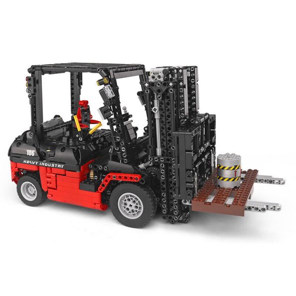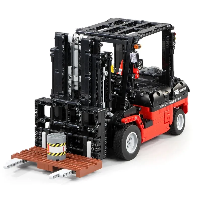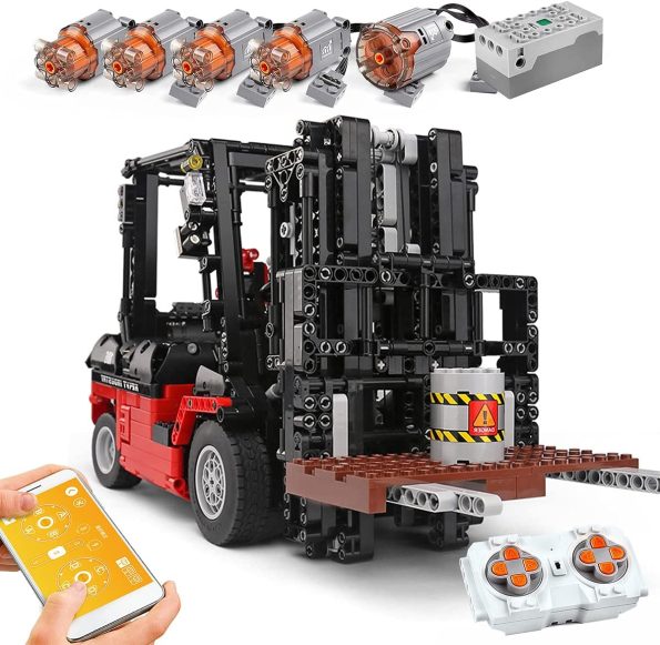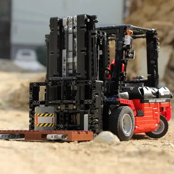 P1 Viličar kocke za sestavljanje s pogonom – 1719-delni, bo osupnil vse navdušence nad sestavljanjem. Velikanski 42cm dolg model modernega viličarja lahko upravljate preko aplikacije na pametnem telefonu ali preko priloženega daljinskega upravljalnika. Za plastične gradnike je uporabljena 100% ABS plastika, katera je izjemno vzdržljiva in ni škodljiva za zdravje. Vsi gradniki so visoke kvalitete in imajo visoko odpornost proti obrabi.