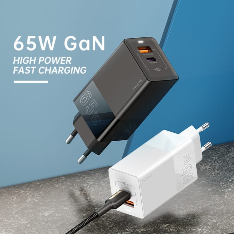 Prenosni polnilni adapter Kuulaa 65W GaN QC3.0 in USB PD – Bel