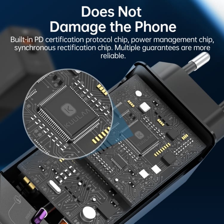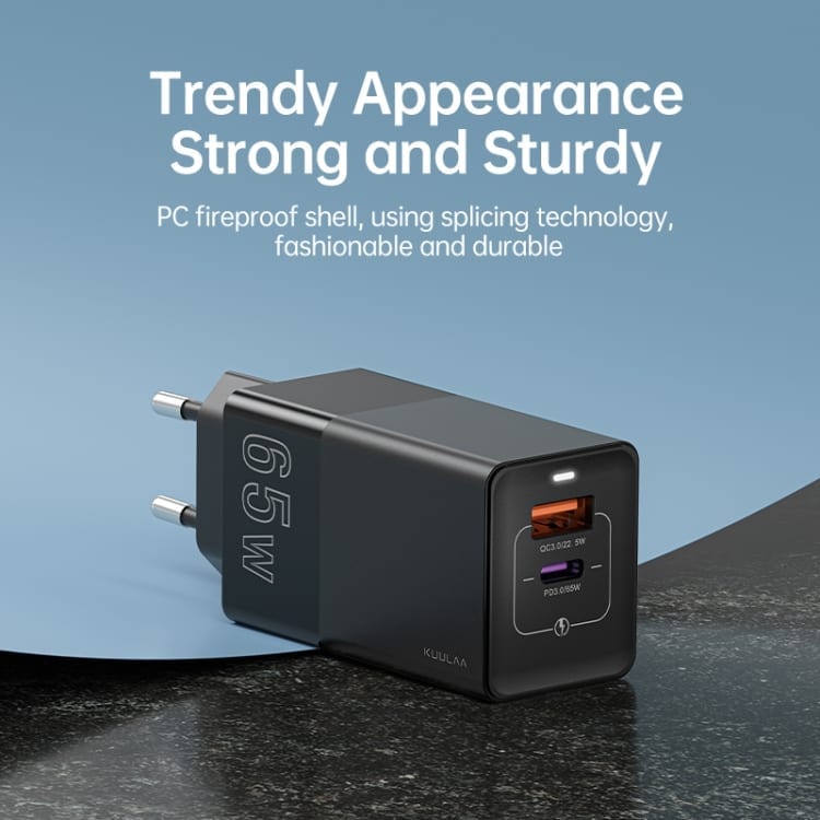 Prenosni polnilni adapter Kuulaa 65W GaN QC3.0 in USB PD pomika meje zmogljivosti med polnilnimi adpaterji za pametne naprave. Zmogljivost polnjenja s 65W nudi stabilno in bliskovito hitro polnjenje pametnih naprav kot so pametni telefoni, tablični računalniki, prenosniki, konzole, itd. Vse več proizvajalcev pametnih naprav se odloča, da napravam ne prilagajo polnilnih adapterjev. Izbira kakovostnega polnilnega adapterja kot je Kuulaa 65W GaN je zagotovo prava izbira za zanesljivo in hitro polnjenje vaše naprave.