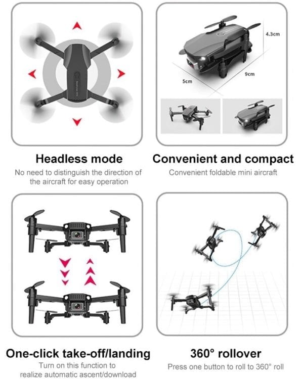R32 Mini zložljiv dron s kamero 4K zaradi svoje majhne zasnove omogoča enostavno prenašanje in vrhunsko odzivnost med upravljanjem. Vgrajena je kamero preko katere lahko zajemate posnetke in spremljate pot med upravljanjem.