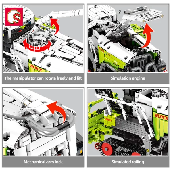 Sembo kombajn kocke za sestavljanje s pogonom – 2023-delni , bo osupnil vse navdušence nad sestavljanjem. Velikanski model modernega kombajna lahko upravljate preko aplikacije na pametnem telefonu ali preko priloženega daljinskega upravljalnika. Za plastične gradnike je uporabljena 100% ABS plastika, katera je izjemno vzdržljiva in ni škodljiva za zdravje. Vsi gradniki so visoke kvalitete in imajo visoko odpornost proti obrabi.