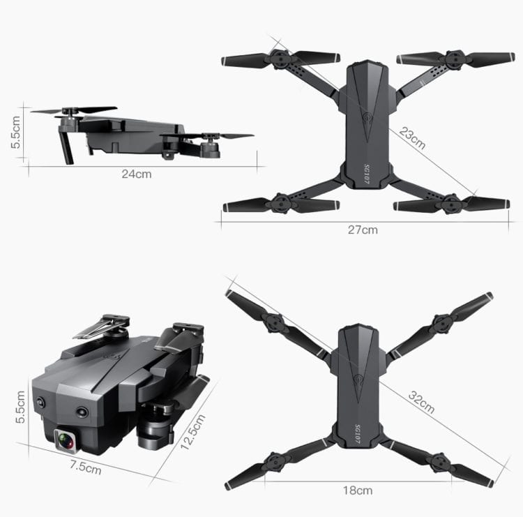 Mere drona: 28*22*5.5 cm, 12*7.5*5.5 cm (Zložen)