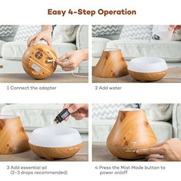 Oljni difuzor je primeren za uporabo doma, v pisarnah in sejnih sobah. Ima sodoben dizajn in je izjemno učinkovit in tih, zato ga lahko uporabljate podnevi in ponoči. Je priročen in majhen ter omogoča čas delovanja do 14 ur. Opremljen je z LED barvito osvetlitvijo in časovnikom.