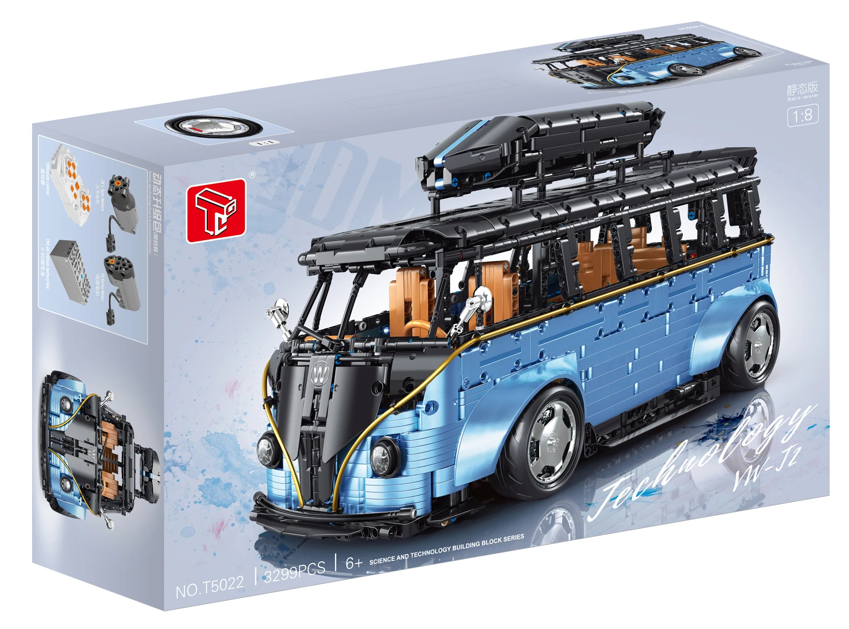TGL T5022A moder bus, kocke za sestavljanje, motoriziran pogon, velik model 1:8, 3299-delni