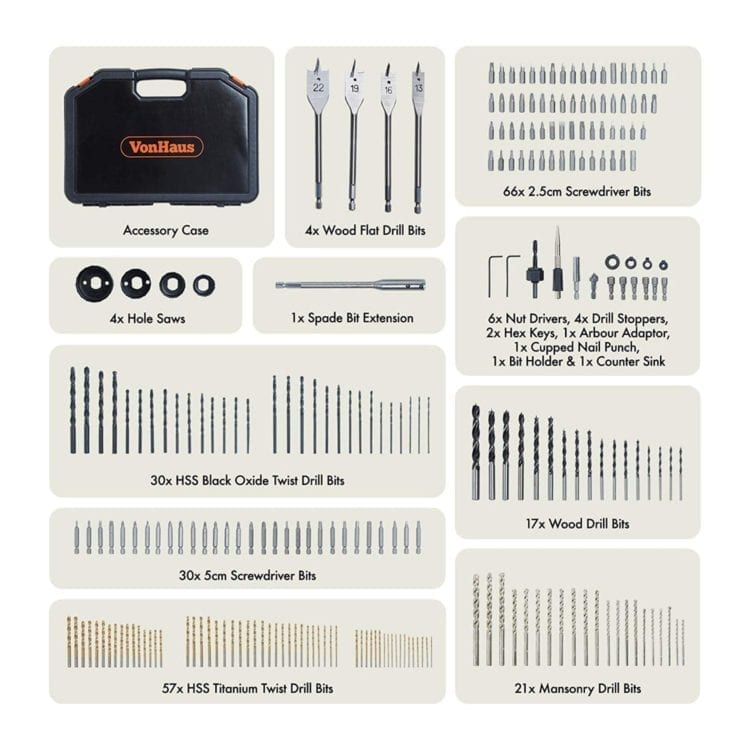 Spletna stran proizvajalca: https://www.vonhaus.com/vh_en/246pc-drill-bit-set