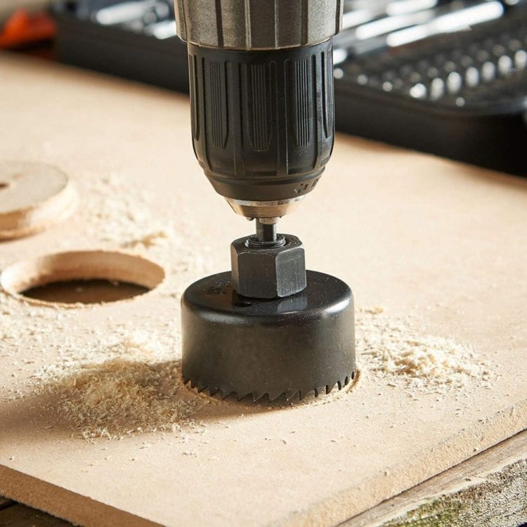 Komplet vsebuje specializirane dodatke, kot so žage za luknje, grezila in leseni svedri
