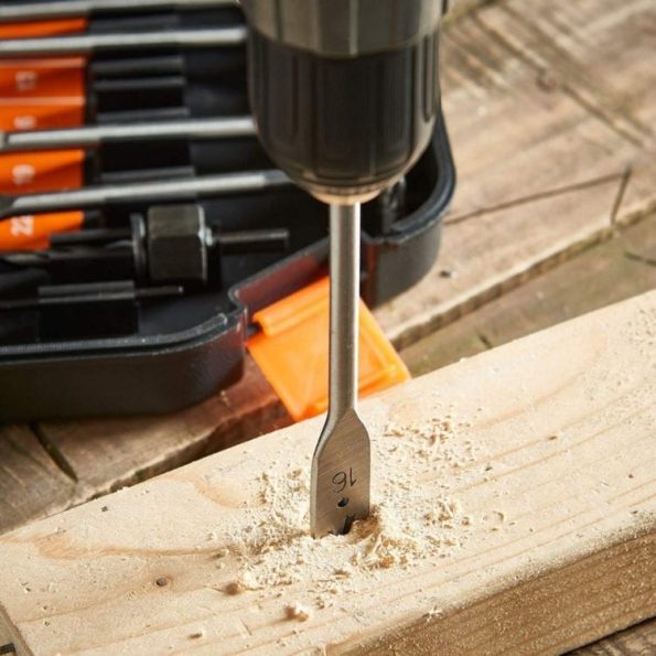 Komplet vsebuje specializirane dodatke, kot so žage za luknje, grezila in leseni svedri