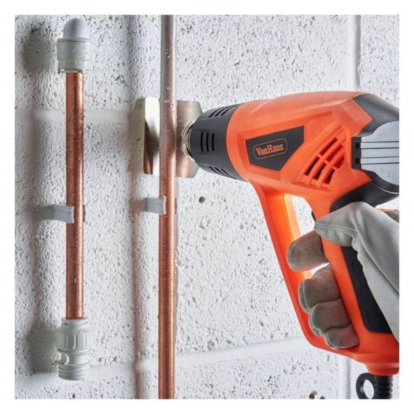 - Zmogljiva toplotna pištola VonHaus 2000W, je idealna za samostojne mojstre pri obnovi in odstranjevanju barve, lepila, upogibanje bakrenih cevi, popuščaje zarjavelih vijakov, obnovitev žara in še mnogo drugo.