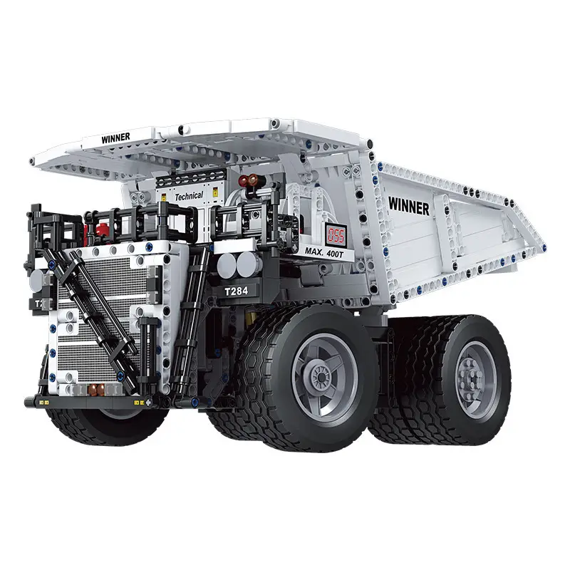 Winner 7120 Velik rudarski tovornjak z motornim pogonom – 1383-delni, bo osupnil vse navdušence nad sestavljanjem. Velikanski 38,5cm dolg model ogromnega rudarskega tovornjaka, lahko upravljate preko aplikacije na pametnem telefonu ali preko priloženega daljinskega upravljalnika. Za plastične gradnike je uporabljena 100% ABS plastika, katera je izjemno vzdržljiva in ni škodljiva za zdravje. Vsi gradniki so visoke kvalitete in imajo visoko odpornost proti obrabi.