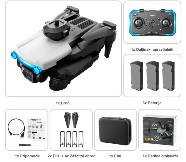 Zložljiv dron s kamero in sistemom za izogibanje oviram 4K K102 Max + 2 dodatni bateriji