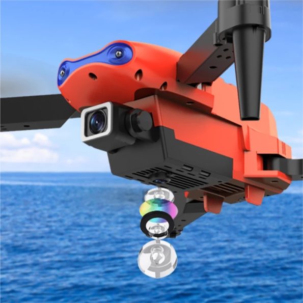 Zložljiv dron z dvema kamerama K7 Max orange omogoča zajemanje posnetkov iz različnih perspektiv, saj je naklon sprednje leče ročno nastavljiv, prav tako pa ima izboljšana različica na spodnjem delu še eno dodatno kamero. Prestavljanje med obema kamerama je enostavno tudi med samim letenjem.